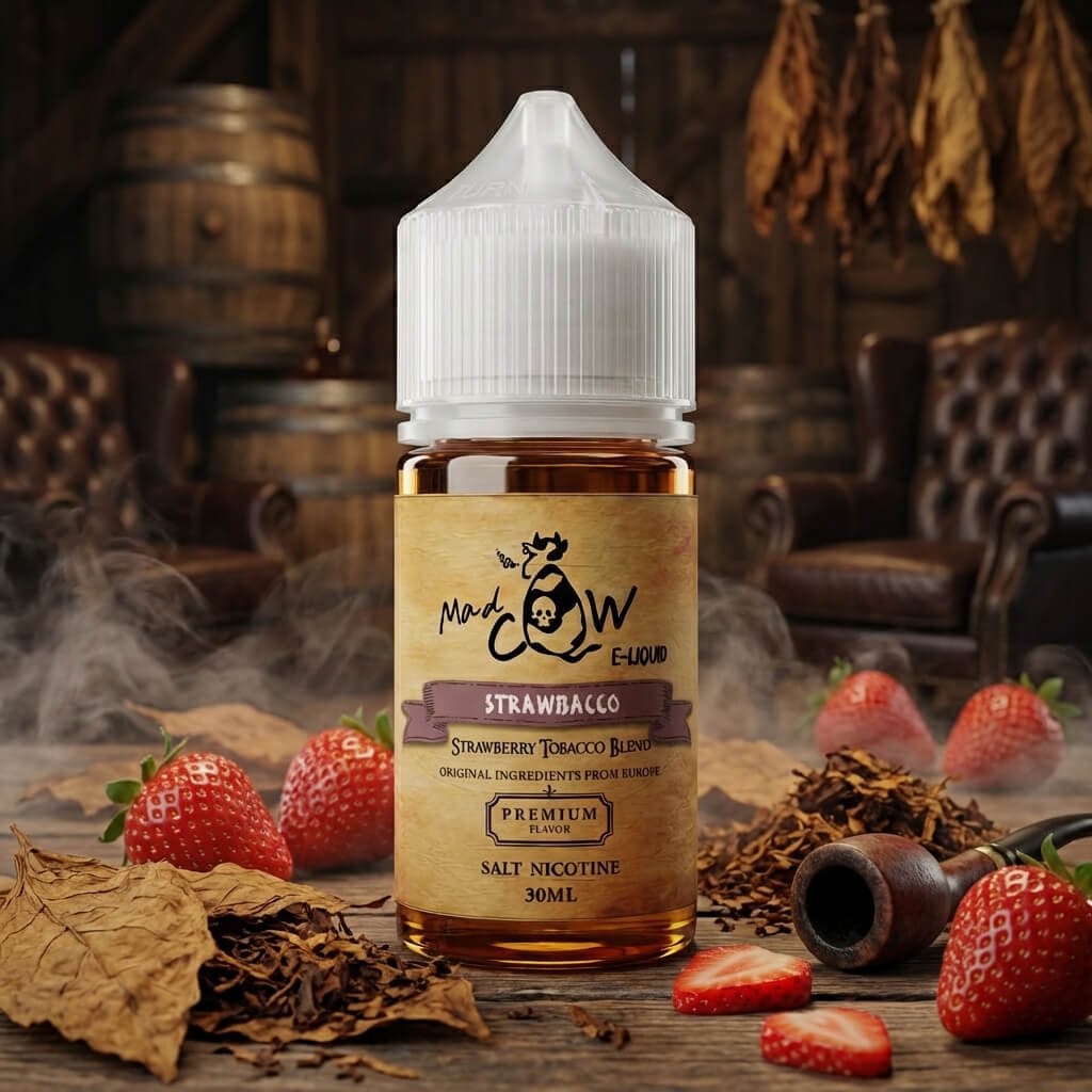 Strawbacco Saltnic น้ำยาบุหรี่ไฟฟ้ากลิ่น Strawberry Tobacco Blend ผสานความหวานนุ่มของสตรอว์เบอร์รี่กับกลิ่นยาสูบโทน Tobacco อย่างลงตัว ให้ฟีลหอมละมุน นุ่มลึก ไม่เลี่ยน เหมาะสำหรับสายหวานผสมสายดาร์กที่ต้องการความบาลานซ์ระดับพรีเมียม